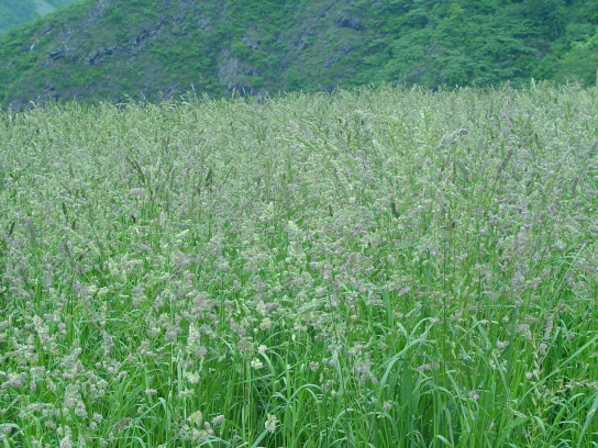 特征特性:“宝兴”鸭茅系禾本科鸭茅属多年生草本植物,疏丛型,基生叶丰富。生育期225-230天,叶片长35厘米左右,宽9-13厘米。茎直立,高150-170厘米。茎基压缩,成扁状。其穗状分枝成10-20厘米长的圆锥花序。小穗8-9毫米长,每小穗含3-5小花,小穗单侧簇集于硬质分枝顶端。种子长6-7毫米,中宽1毫米,千粒重1.000克左右。