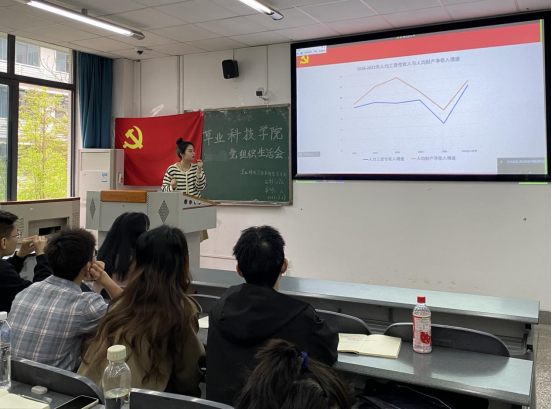 研究生杨雪讲解《中国共产党普通高等学校基层组织工作条例》。结合时政热点分析,杨雪同志从个人发展、社会经济、国际局势三个不同角度强调了高校思政教育工作的必要性和重要性,循循善诱、生动活泼地引导支部同志深入理解党的政治教育方针,为贯彻落实《条例》基本内容夯实了理论基础。会议还学习了《党支部建设三年行动计划》并探讨交流了如何丰富和创新党组织生活会的内容与形式等党支部建设相关工作,为推动党支部建设全面进步作出规划。