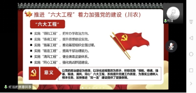 何洁带领全体党员同志重温学习学校《关于加强党的政治建设的实施方案》(校党字〔2019〕70号),号召大家坚定理想信念,明确是非界限,增强政治意识,与新时代同向同行、共同前进,为加快推进“双一流”高校建设贡献力量。