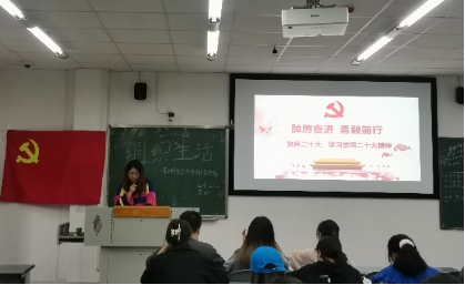 本科生党支部在四教B区305教室开展“学习贯彻党的二十大精神”主题党组织生活会,石雨鑫同志担任主讲人。