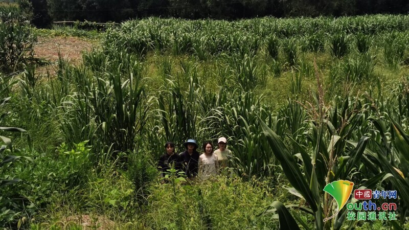图为团队成员站在高度为两米到四米的狼尾草田中。 中国青年网通讯员 祝诗词 提供