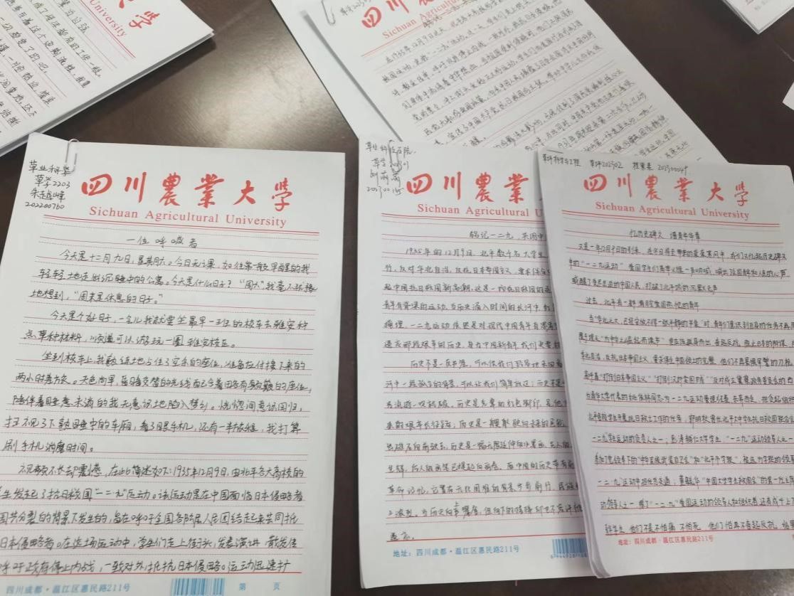 活动前,同学们深入学习了解活动群中发布的“一二·九”运动资料。在此基础上,根据自己的心得体会撰写文稿。草学202203朱越峰同学以笔立心,以《一位呼喊者》为题,发出时代的呐喊,无声书写尽显己志。草坪202302程紫柔同学写下“铭记历史,爱我中华,勿忘国耻,青春自强”的铿锵誓言。草学202301王鑫倩同学用磅礴大气的文字,展现了新时代青年不畏艰险、积极向上、奋发有为的精神面貌。