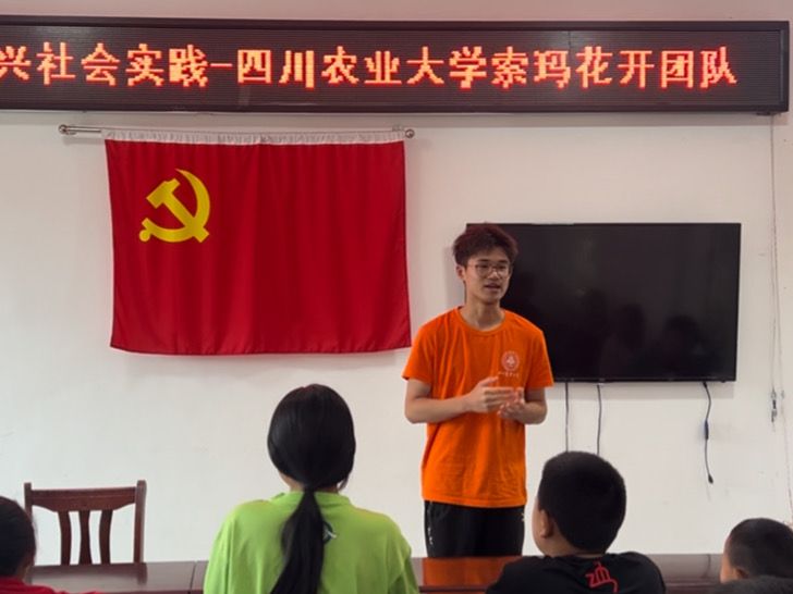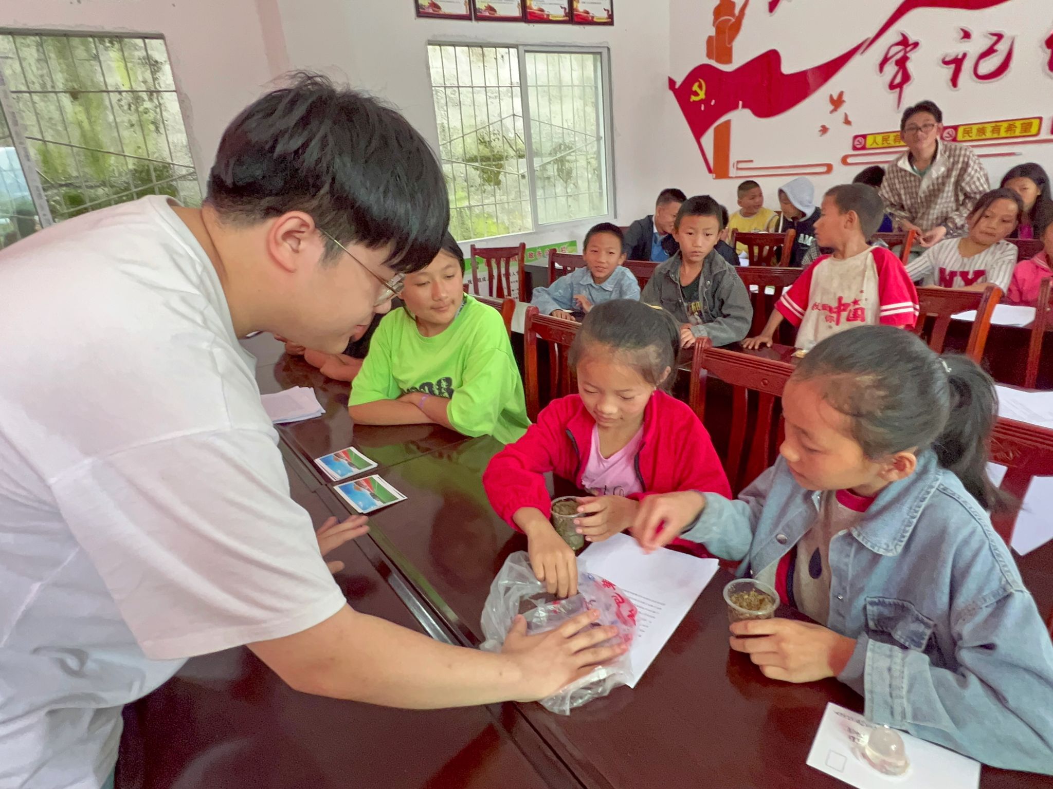 “老师,请问小草为什么生命这么顽强呢?”“我们家可以种草吗?”团队成员李昊远利用草学专业知识,为孩子们介绍草业微生物菌剂、“川农1号”、“长江2号”等川农优秀科研成果,在引导孩子们用普通话问问题的同时激发以小草致富的兴趣。李昊远还作为“美丽中国”生态宣讲员,以普通话教学为契机,结合雷波县特色的自然地理环境,分析近年来极端气候出现的原因,讲解如何通过草调节生态系统、改善生态环境。团队特地将从川农带去各式各样的观赏草种分发给孩子们,希望草种顽强的生命能够陪伴雷波孩子们耕读励志,见证雷波孩子们未来的成长与进步。