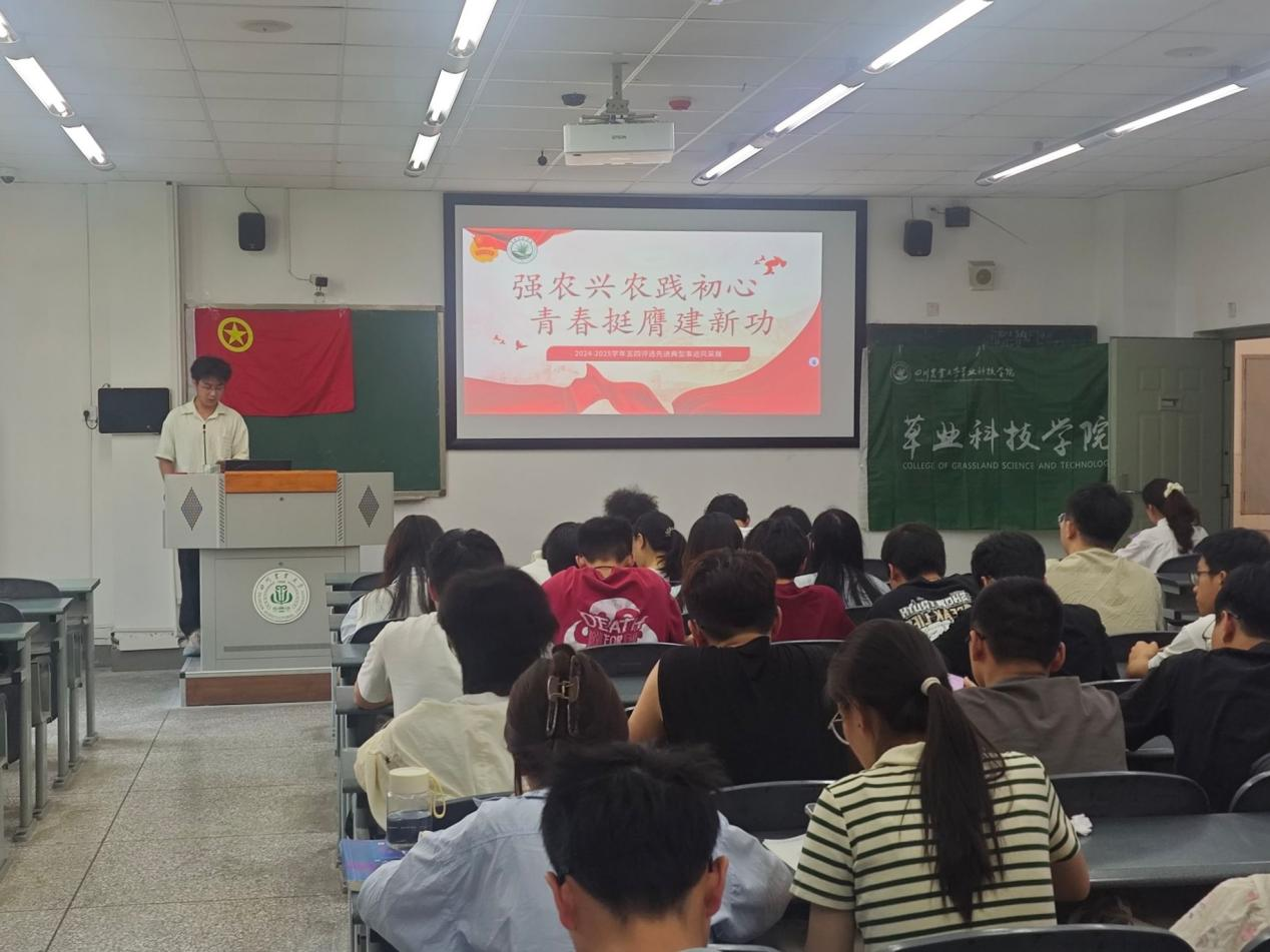 精心筹备并举办了“强农兴农践初心,青春挺膺建新功”经验分享会,邀请优秀共青团干部朱子语、优秀青年志愿者彭诗贻、优秀共青团员刘入源、优秀青马班学员高翊栋四位榜样代表,分享成长故事。他们讲述了如何在日常学习生活中通过不懈努力和积极进取实现自我提升。全体同学还共同观看了校团委原创的五四主题快闪视频《百年传薪火,川农正青春》,在激昂的旋律中感受百年传承的青春脉搏,汲取奋进力量。