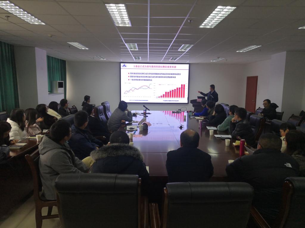 杜俊波从自然基金地位、自然基金类型、我校资助情况、申请人写什么、评审人看什么五方面作了指导培训。他指出,学校高度重视自然基金项目申报工作,通过从双支计划、职称评审、业绩评分、奖励办法等文件对自然基金项目予以敦促和导向,将自然基金项目贯穿教职工的整个职业生涯的全过程各方面。并重点从写作前、写作时、写作后、继往开来等方面对申请人写什么以及评审人看什么分享了自己多年成功申报的经验。