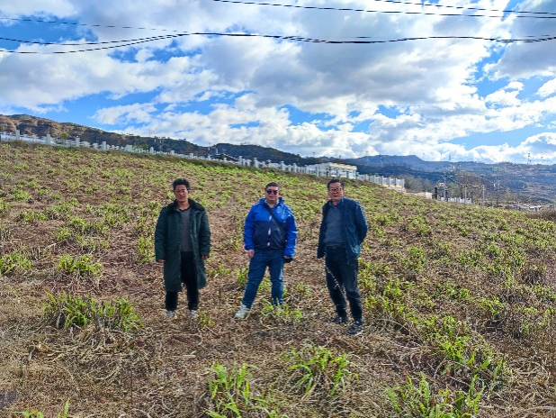 在县农业农村局工作人员陪同下,聂刚前往九口乡美姑山羊原种场牧草种植基地,对狼尾草越冬管理、光叶紫花苕收获加工等进行技术指导。