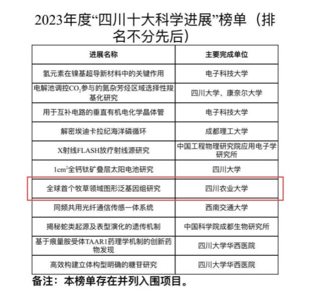 副院长黄琳凯教授团队主持的“全球首个牧草领域图形泛基因组研究”成功入选。