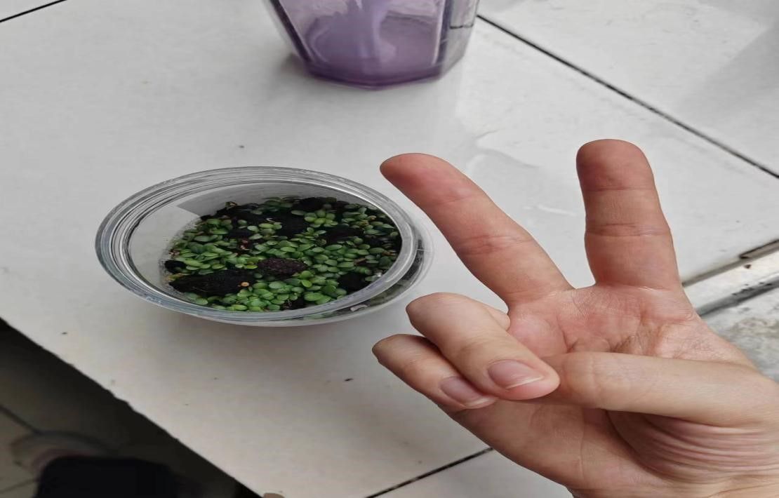 图为参与同学将发芽种子转移到营养土后的打卡照片
