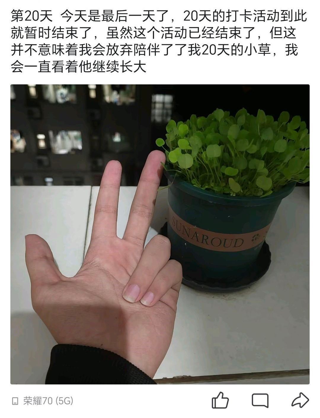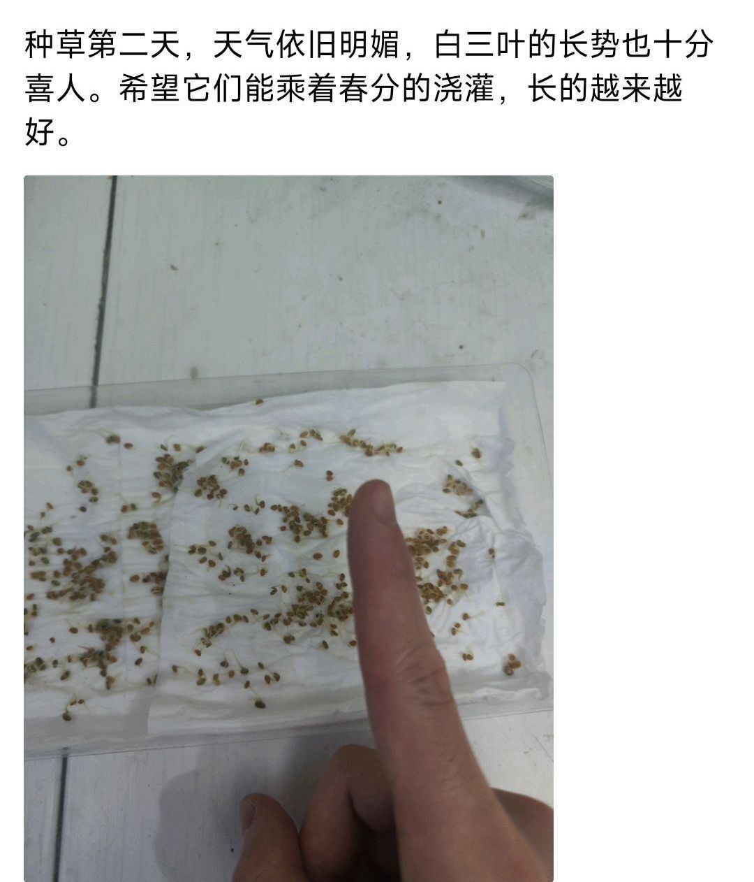 图为参与者打卡最后一天草种的生长情况