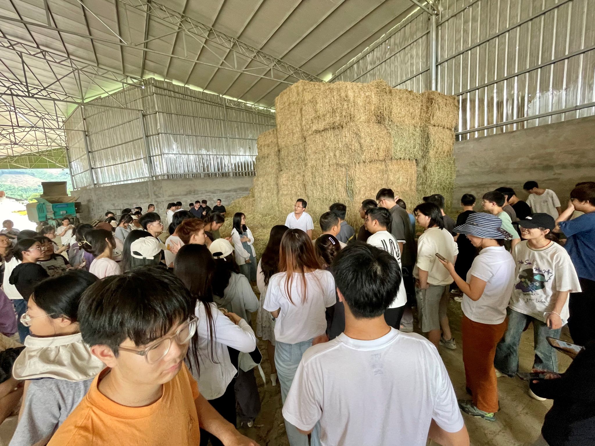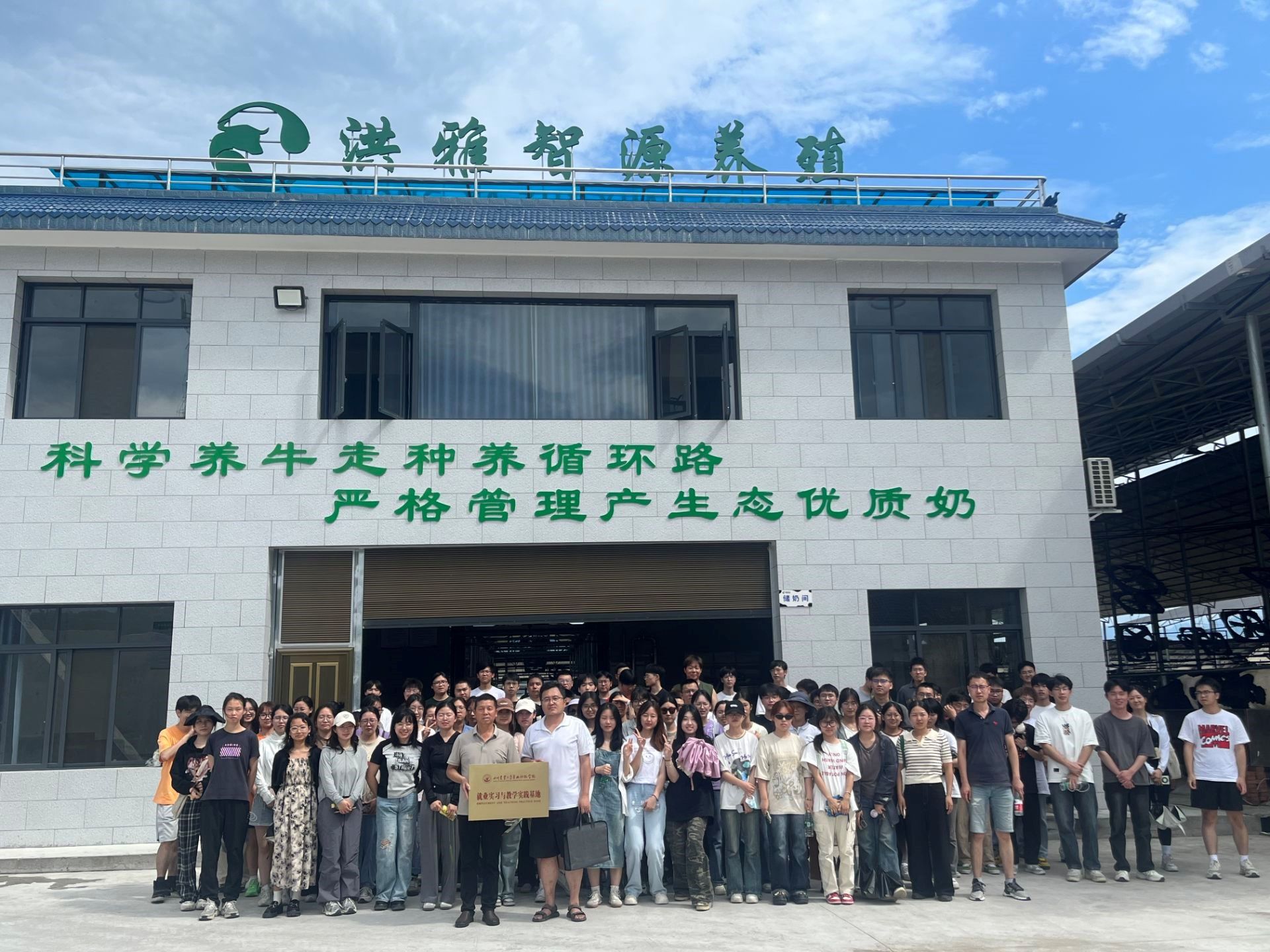 在位于洪雅县东岳镇的洪雅智源养殖场,同学们参观了玉米、多花黑麦草等青贮窖、现代化草产品加工机械、现代化的牛舍和生态养殖循环系统,详细了解了“饲草种植—奶牛养殖—粪污处理—沼气发电—粪肥还田”的绿色循环产业链。