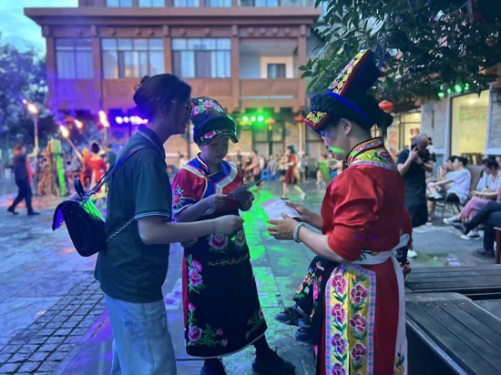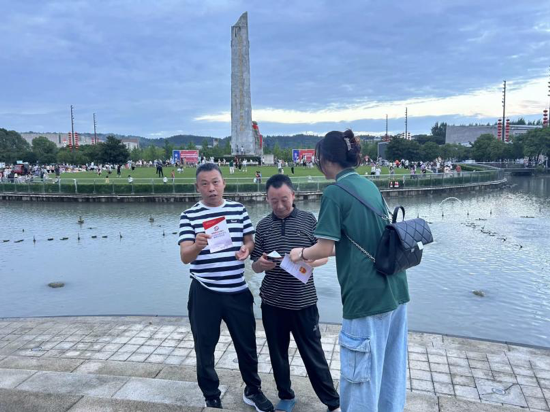 7月20日,实践团来到绵阳市北川羌族自治县禹王广场,面向羌族居民发放推普手册并宣讲推广国家通用语言文字的重要性,促进文化交流,全面推广普通话。