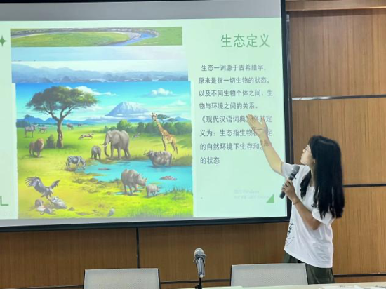 建设生态文明,关系人民福祉,关乎民族未来。为贯彻“绿水青山就是金山银山”的理念,实践团采用推普形式带来了一堂生态知识课程,从生态定义到大自然组成,深化生态文明教育,引导孩子们发挥才智,成为人类美好家园的积极建设者。