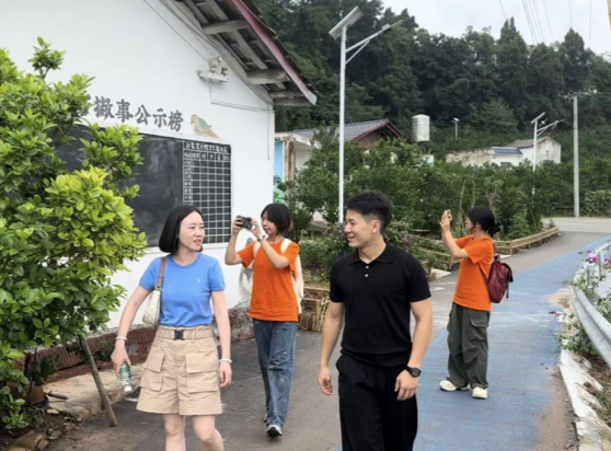 7月19日,实践团前往眉山市仁寿县虞丞乡丞相村开展实地调研,感受当地红色文化。丞相村位于龙泉山南段,低山丘陵广布、老幼多青壮少,普通话普及率较低,大部分居民说所谓的“川普”。实践团以推广普通话为契机,走访当地果园、党建大院、红色教育基地等,并举行基地协议签约暨授牌仪式。巩固拓展脱贫攻坚成果的同时与乡村振兴有效衔接,全面提高当地国家通用语言文字普及程度和质量。