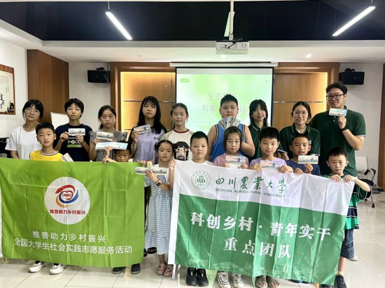 课程的最后,实践团依托草学专业优势,以四川农业大学景色为封面,制作三类精美的草种子卡片,用互动小游戏的方式将卡片赠予孩子们。当孩子们将卡片埋入土壤、用心浇灌时,也呵护着自己哪颗懵懂的内心,种子成长,童心未泯。