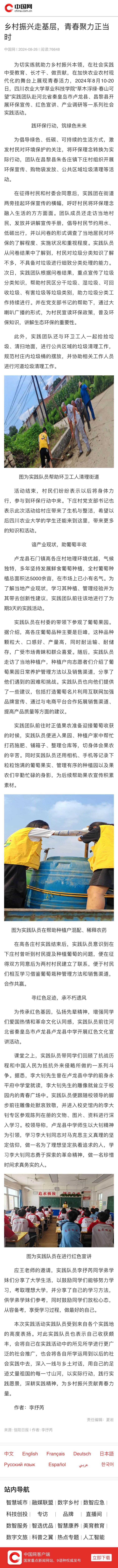 (中国网)乡村振兴走基层,青春聚力正当时
