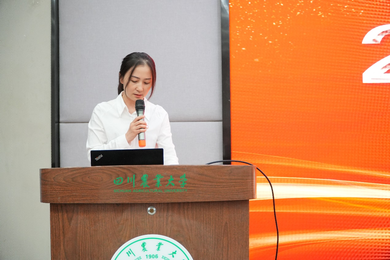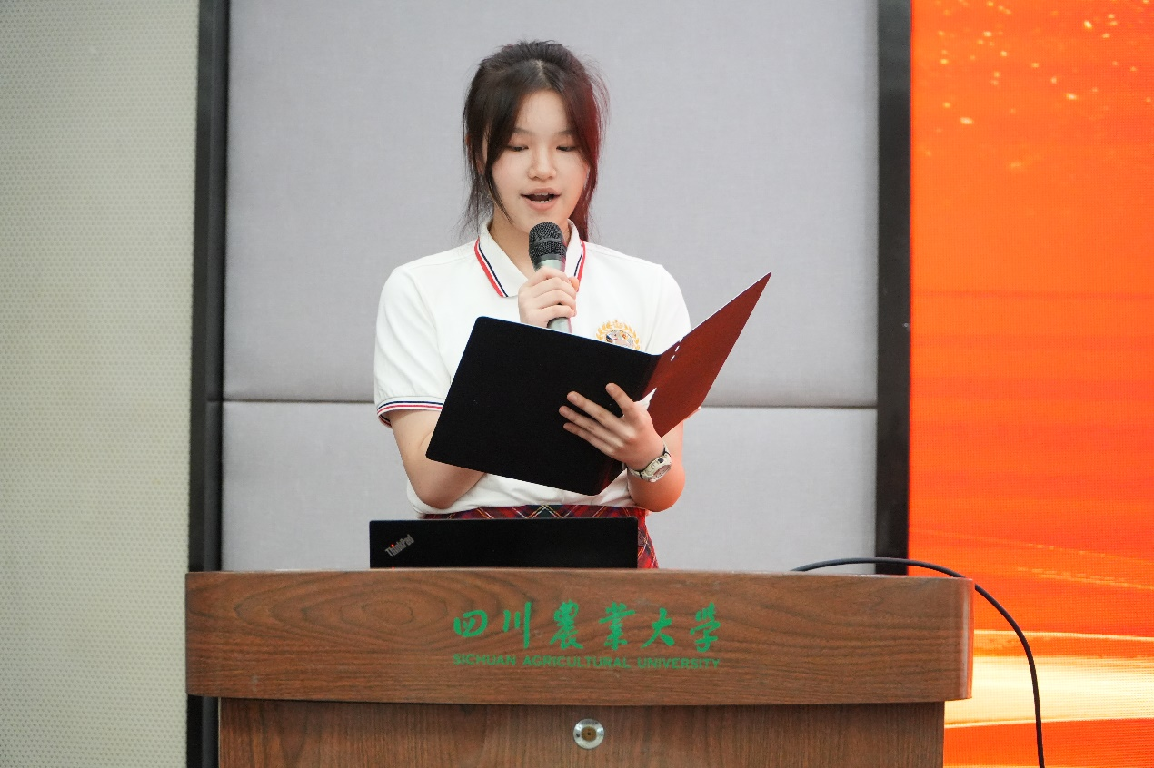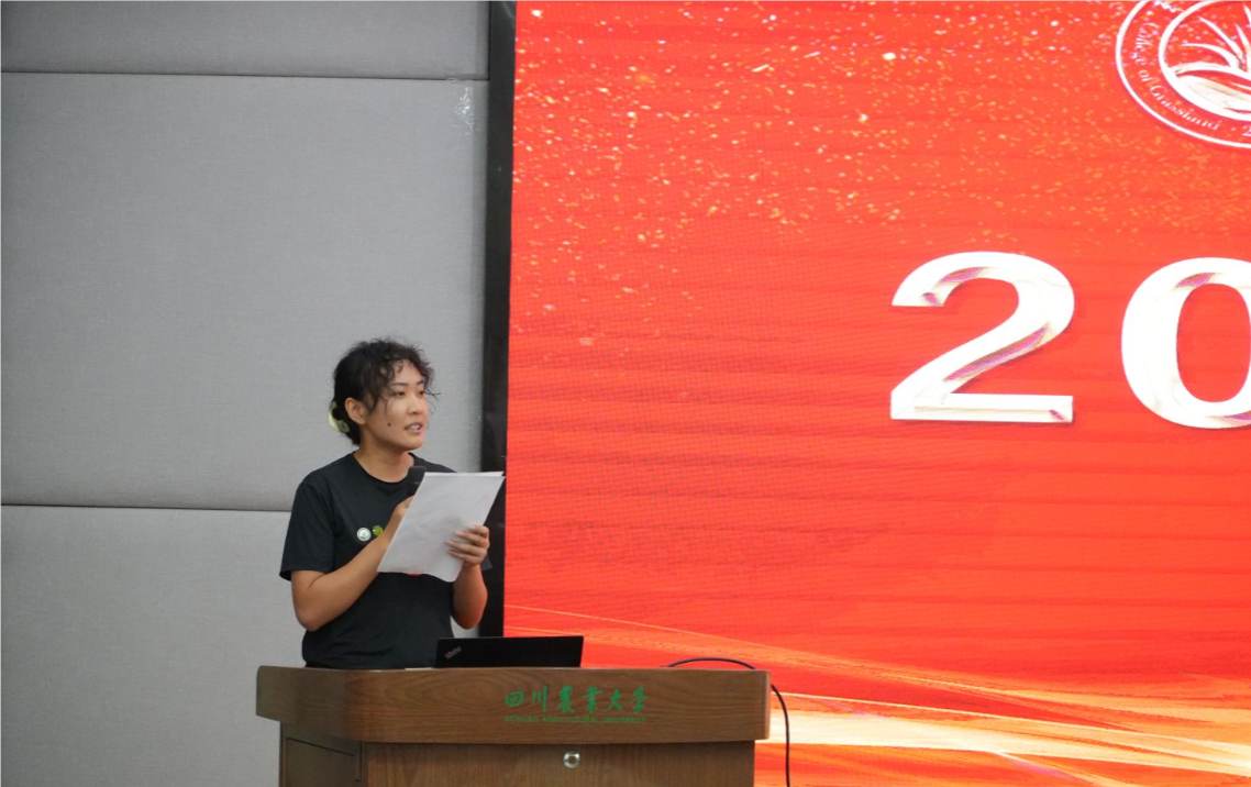 草学2403班李周小果同学与草坪2402班陈颖希同学代表新生发言。李周小果的妈妈是基层草原工作者,在与妈妈奔跑于山野的日子里,草莽原野便是她的故乡写照,考入川农草院也成了她一直以来的理想。陈颖希表示大学并非是放纵的时光,要不负韶华,在未来的四年里共同进步,共同成长,用微笑和汗水去迎接成功。