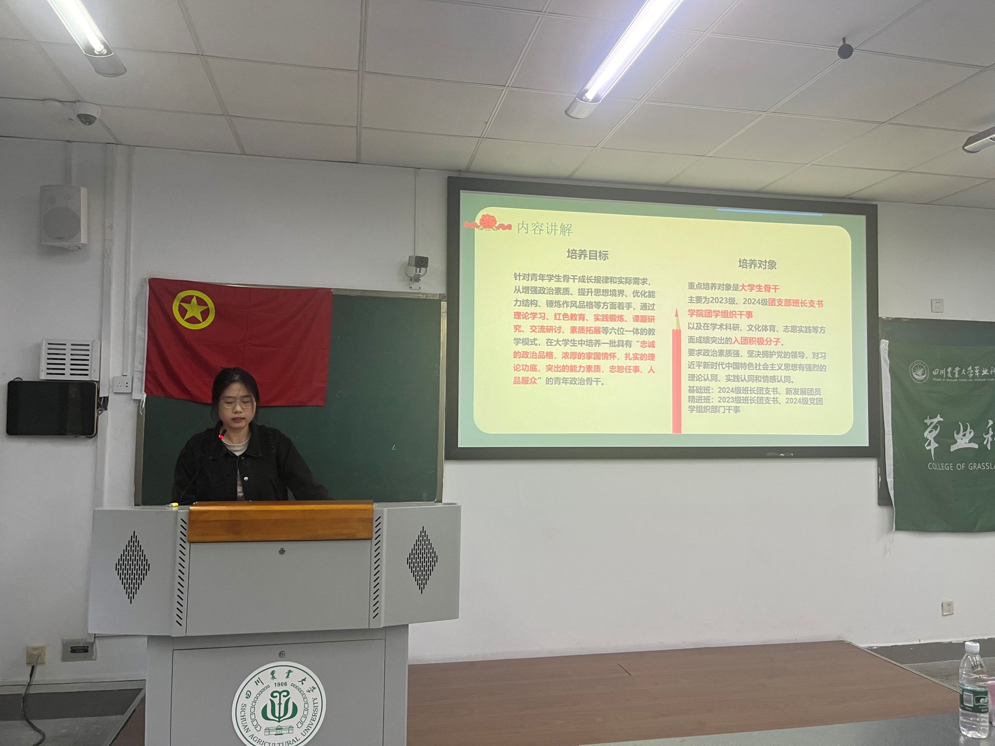 团委学生兼职副书记肖春燕同学详细介绍“青马班”的培养模式和课程安排。团委将结合理论学习与实践锻炼、集中研学与自主学习、师生互动和朋辈分享,致力于将学员培养成为“政治坚定、素质全面、模范表率、堪当重任”的青年马克思主义者。