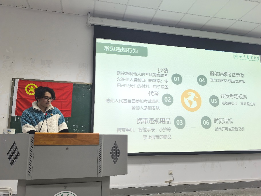 2023级和2024级共计70余名本科生参加。草坪科学与工程系余国辉老师以“坚守公平正义,以实力书写未来”为题,向与会同学强调考场的纪律要求。