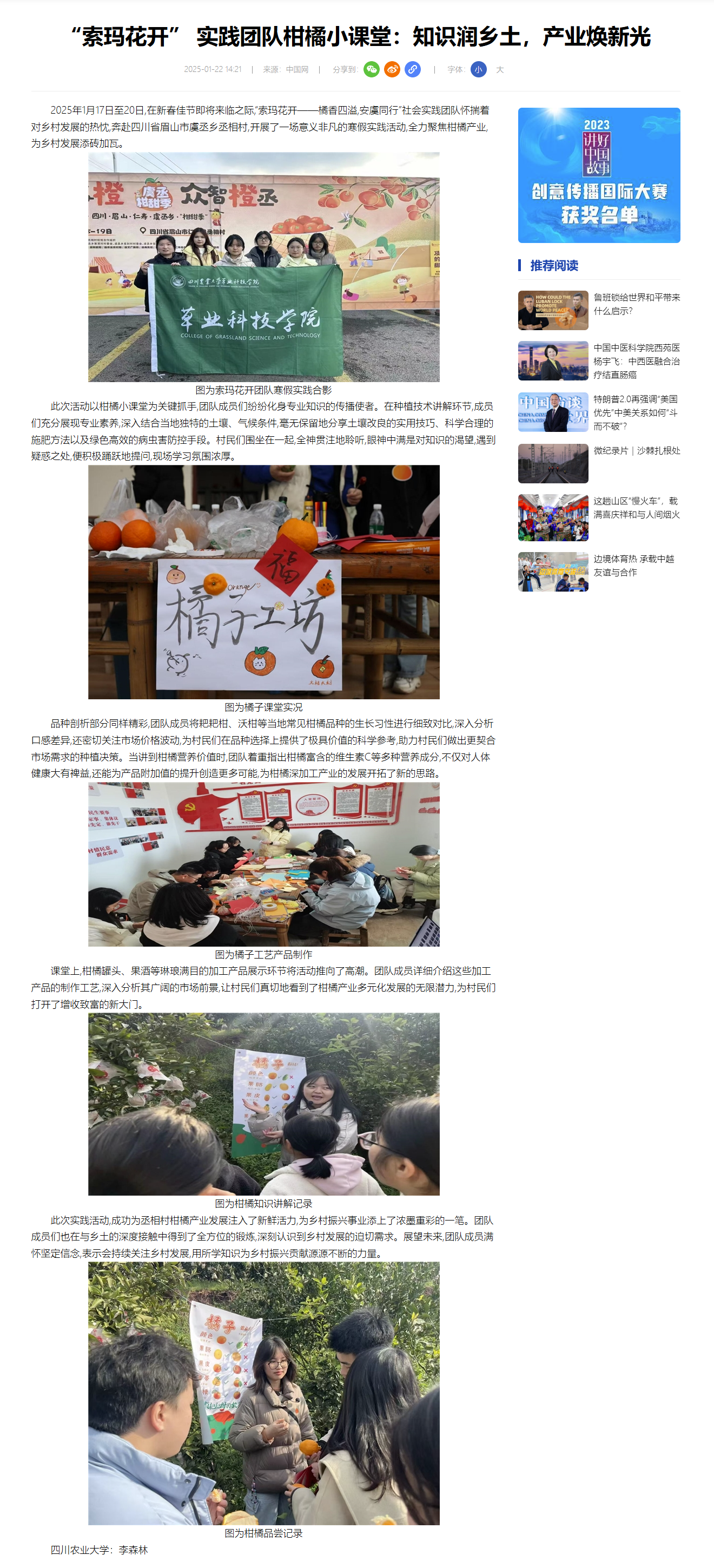 (中国网)“索玛花开” 实践团队柑橘小课堂:知识润乡土,产业焕新光