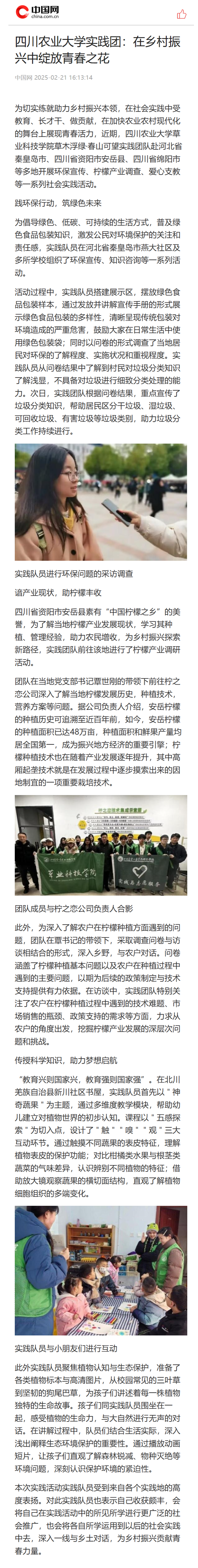 (中国网)四川农业大学实践团:在乡村振兴中绽放青春之花