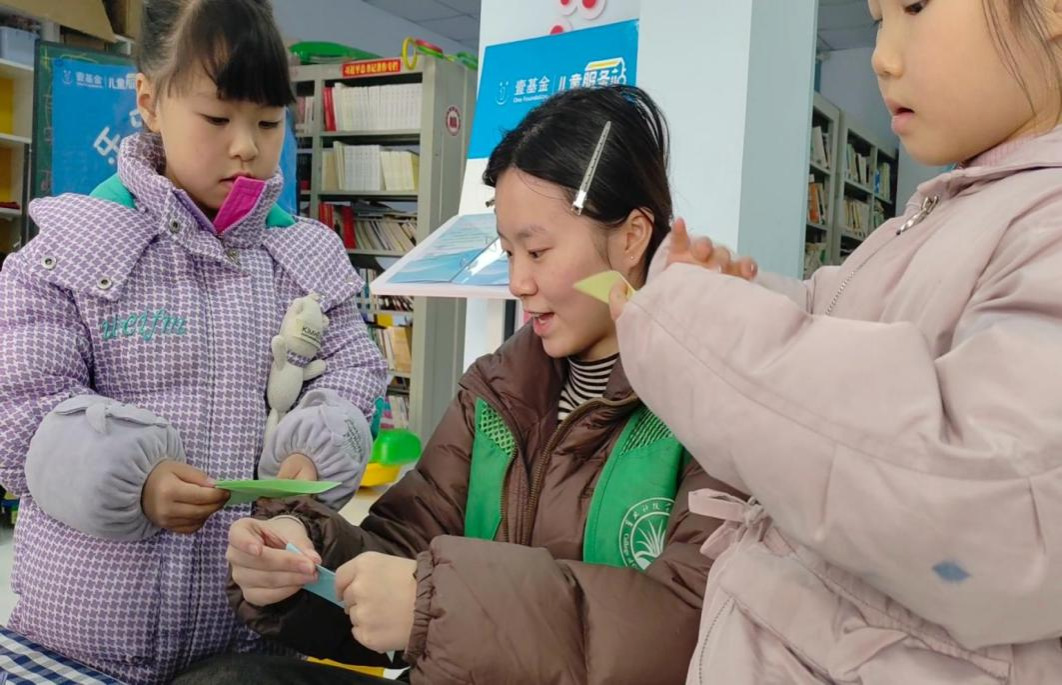 图为“萌蘖新绿”支教团教授传统文化折纸