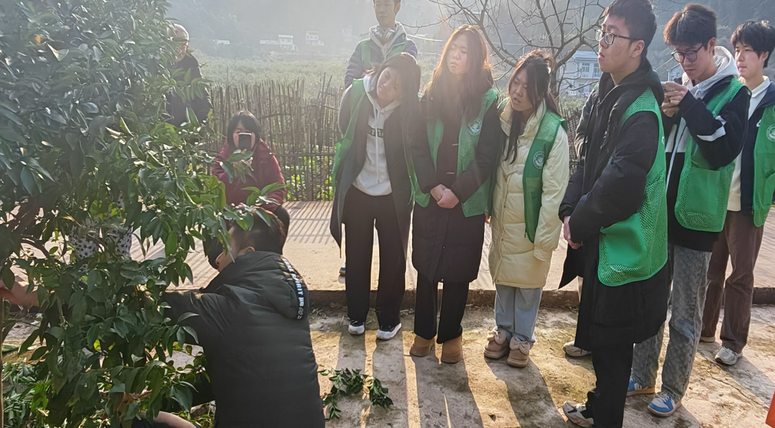 图为“草木浮绿・春山可望”团队成员学习果树修剪技巧