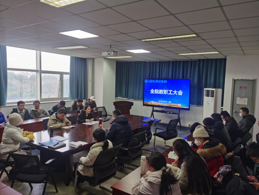在2教501会议室召开教职工大会,深入学习贯彻习近平总书记近期重要讲话精神,传达学习省委、学校重要会议和文件精神,研究部署nba看球