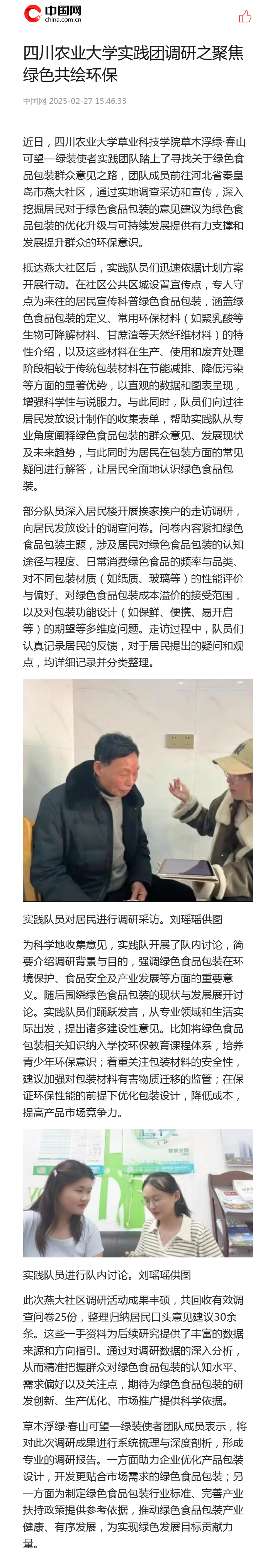(中国网)四川农业大学实践团调研之聚焦绿色共绘环保