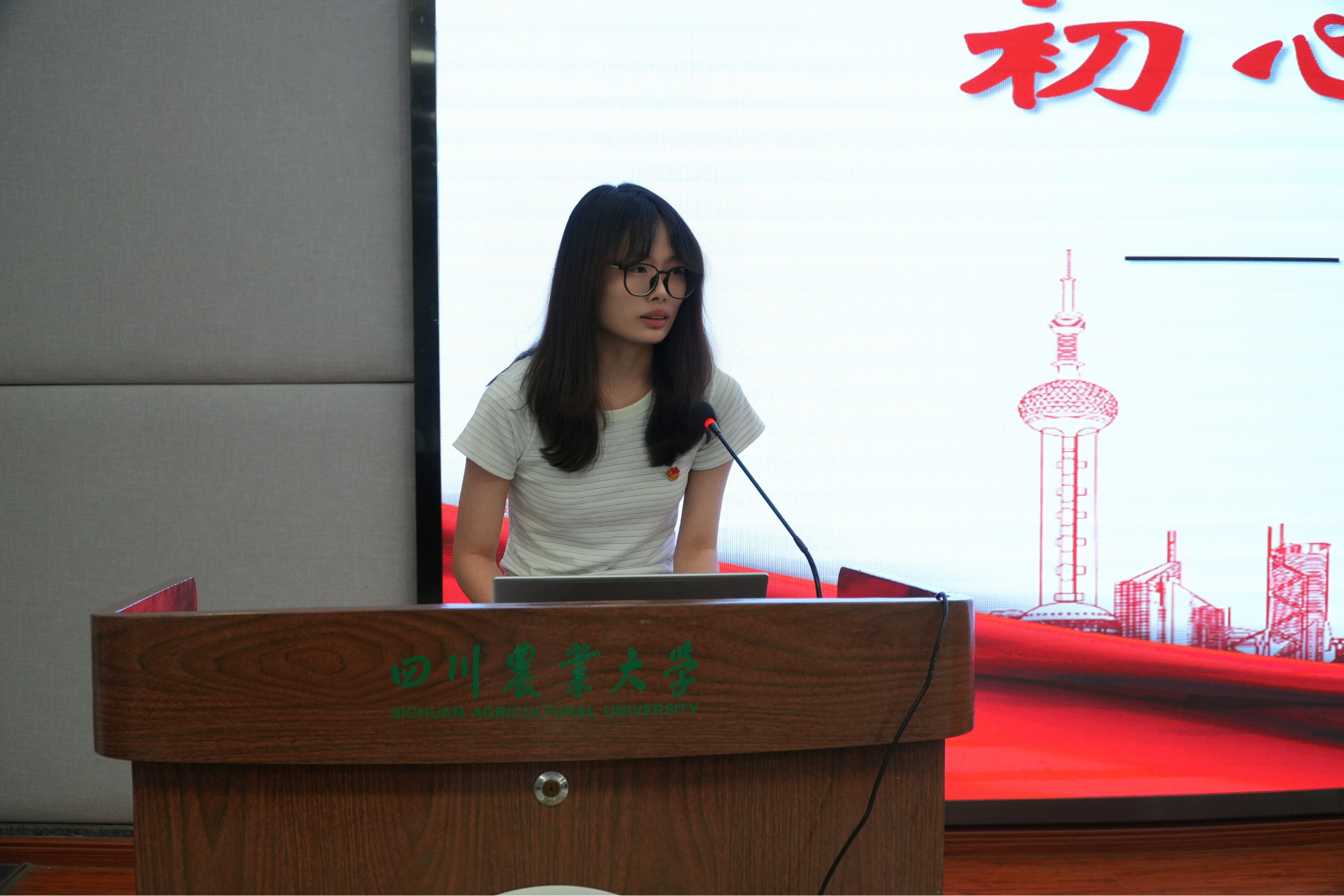 刘静围绕校史传承、红色基因和入党之路三个维度展开讲解。她从学校办学历程讲起,系统介绍了四川农业大学作为国家“211工程”和“双一流”建设高校的发展脉络,特别强调了学校自1906年建校以来始终秉持“兴农报国”的初心,传承“爱国敬业、艰苦奋斗、团结拼搏、求实创新”的“川农大精神”。