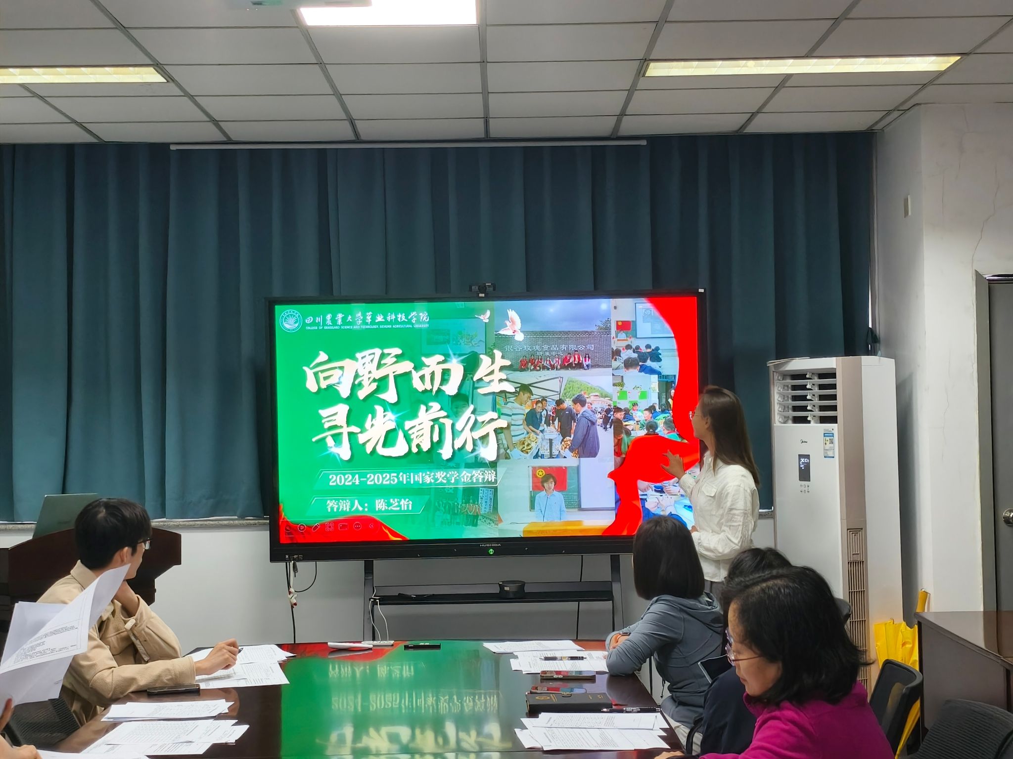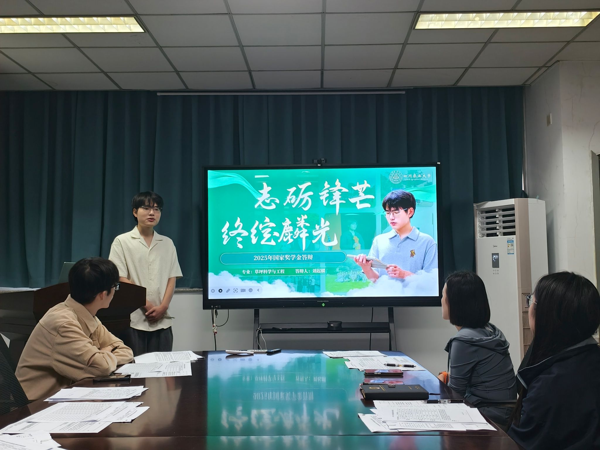本次交流会由刘起麟、周子欣、陈芝怡、王新四位候选人围绕各自的学业成绩、科研创新、社会实践、志愿服务等维度展开自我陈述。候选人们各展其才,不仅用数据和成果证明实力,更通过“科研故事”“实践感悟”“未来规划”等板块,传递了草业人“扎根大地、服务生态”的情怀。屏幕上定格的瞬间、流动的文字,既是他们挥洒汗水、书写青春的证明,也是他们锚定梦想、镌刻未来的起点。