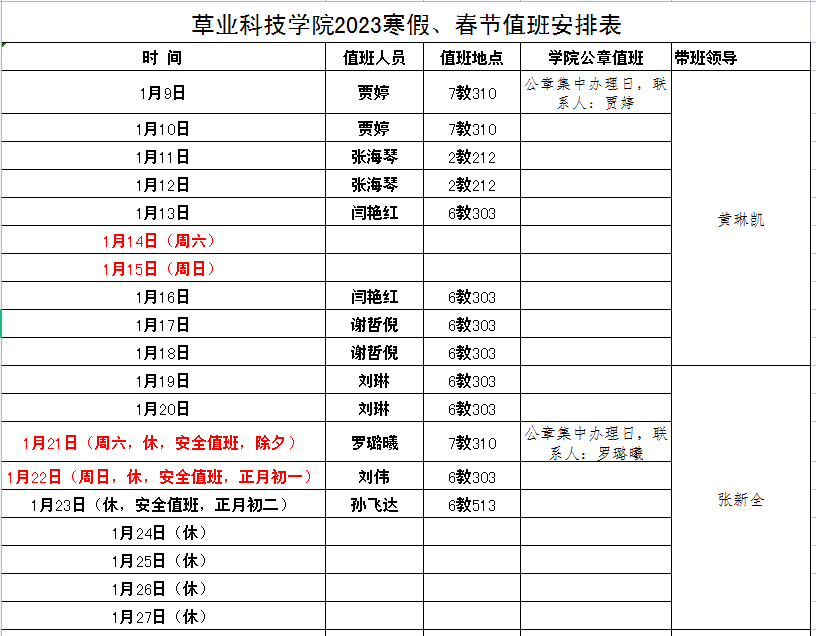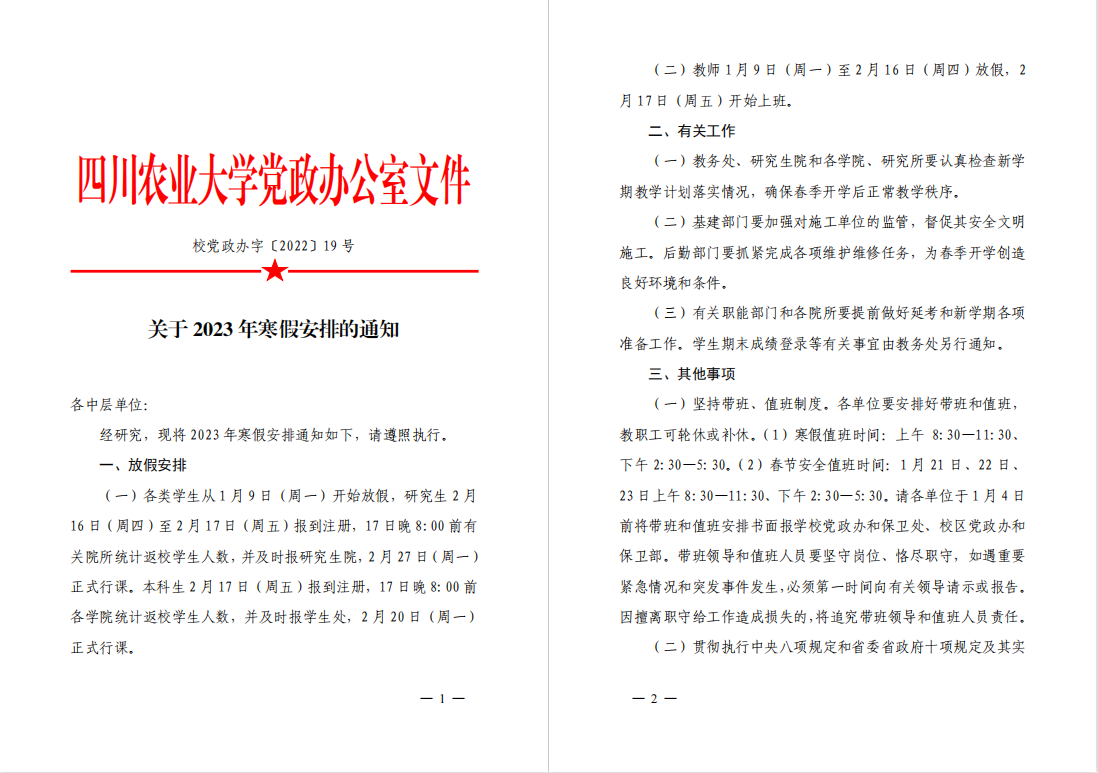 2023年寒假放假通知及值班安排