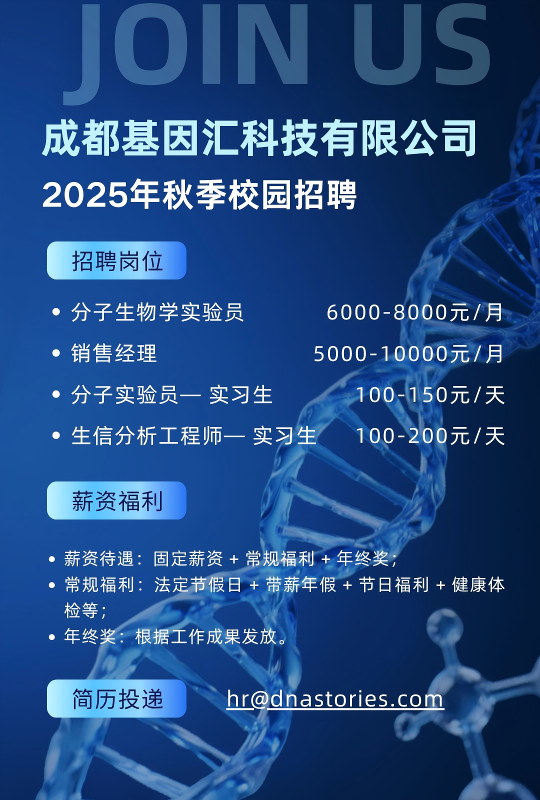 专业背景:生物科学、分子生物学、遗传学、生物技术、生物化学或医学检验等相关专业。