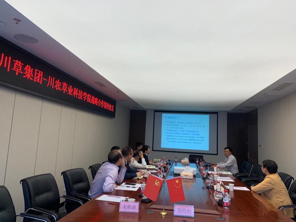 黄灿从组建背景、发展思路、战略规划及共建科研教学与人才培养平台等方面对川草集团作了介绍,并指出双方在人才培养、产业合作、草牧业技术培训、科技成果转化等方面可以深入探讨合作。